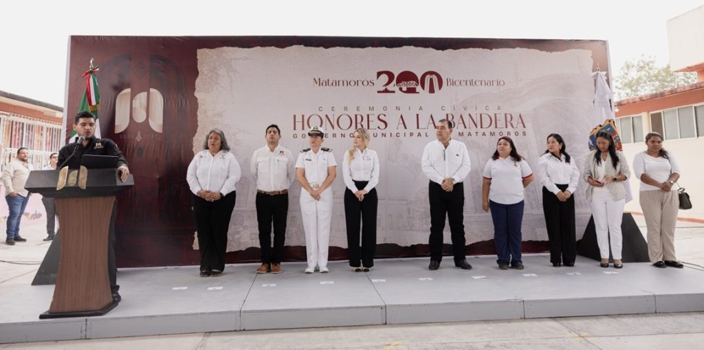 H. Matamoros, Tamaulipas. (27 de abril del 2026) Comprometido con la educación y el fortalecimiento de la identidad nacional, el alcalde Beto Granados encabezó la ceremonia de honores a la bandera en el Jardín de Niños «Valentín Contreras», donde reafirmó su apoyo para mejorar las condiciones de aprendizaje de la niñez matamorense.